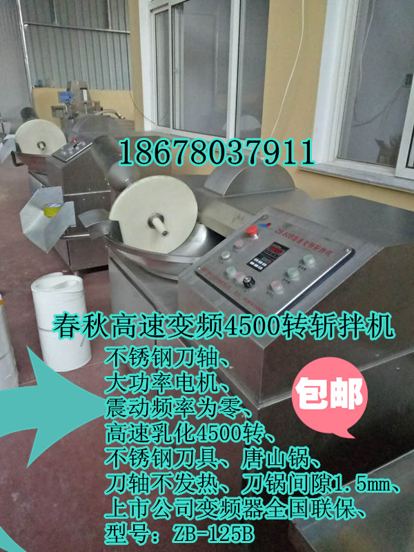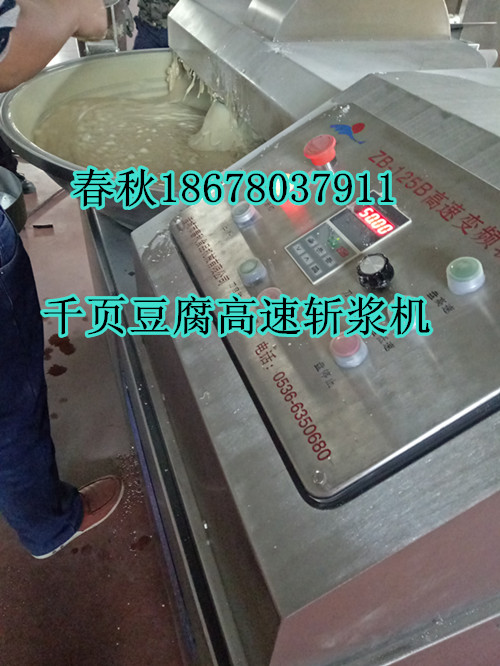 千頁(yè)豆腐高速變頻斬漿機(jī)ZB-80B斬拌機(jī),千頁(yè)豆腐高速斬漿機(jī)價(jià)格,千頁(yè)豆腐怎么選擇設(shè)備,千頁(yè)豆腐斬拌機(jī)便宜的敢用嗎?安全嗎?諸城市春秋食品機(jī)械專(zhuān)業(yè)生產(chǎn)千頁(yè)豆腐全套加工設(shè)備,高速斬拌機(jī)4500轉(zhuǎn)高轉(zhuǎn)速,唐山加厚鍋,不銹鋼刀軸,上市公司變頻器,高精準(zhǔn)度刀鍋間隙,刀軸保證使用5年不變樣!